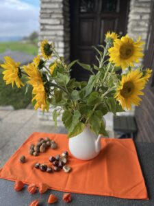Wenn die Sonne sich hinter den Wolken versteckt, pflücke ich sie mir vom Feld. Stelle leuchtende Sonnenblumen in einen Krug und erfreue mich daran. Ihre Blüten erzählen mir leise Geschichten vom Sommer, von heißen Tagen, lauen Abenden und das Summen der Bienen. Und wenn ich meine Augen schließe, spüre ich noch die Wärme des Sommers auf meiner Haut.