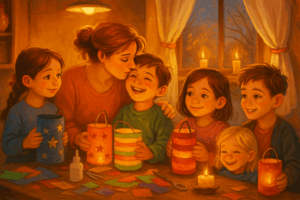 Die Mutter stand in der Tür und blickte voller Liebe zu den Kindern. Voller Wehmut musste sie an ihre eigene Kindheit denken, als ihre Mutter mit ihr und ihren Geschwistern Laternen bastelte.